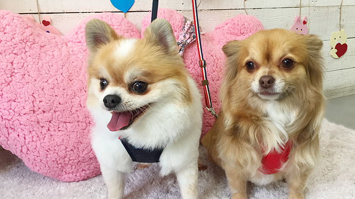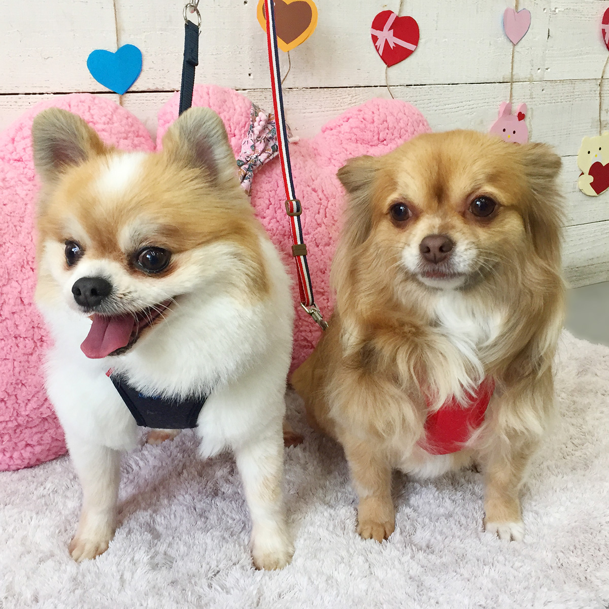 ミックスのブルちゃんとチワワのココちゃんが、