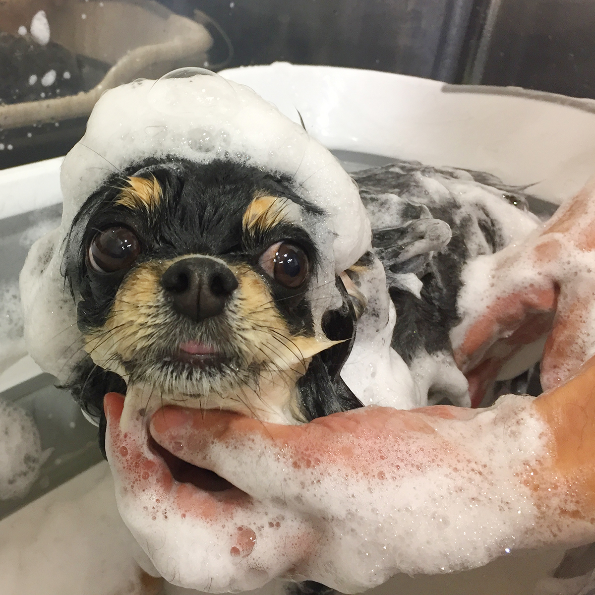 チワワのるにちゃんが、シャンプーコースと