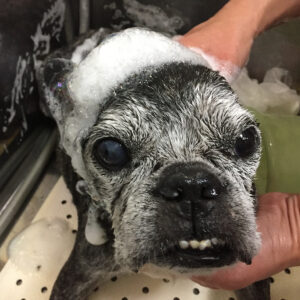 フレンチブルドッグのてんちゃんシャンプーコースと炭酸泉スパでご来店♪