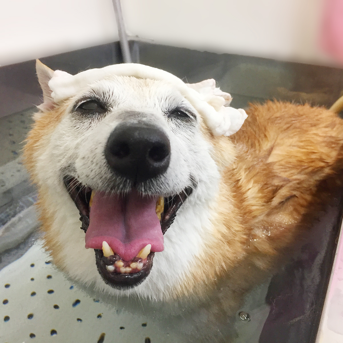 豆柴の花ちゃんがシャンプーコースと