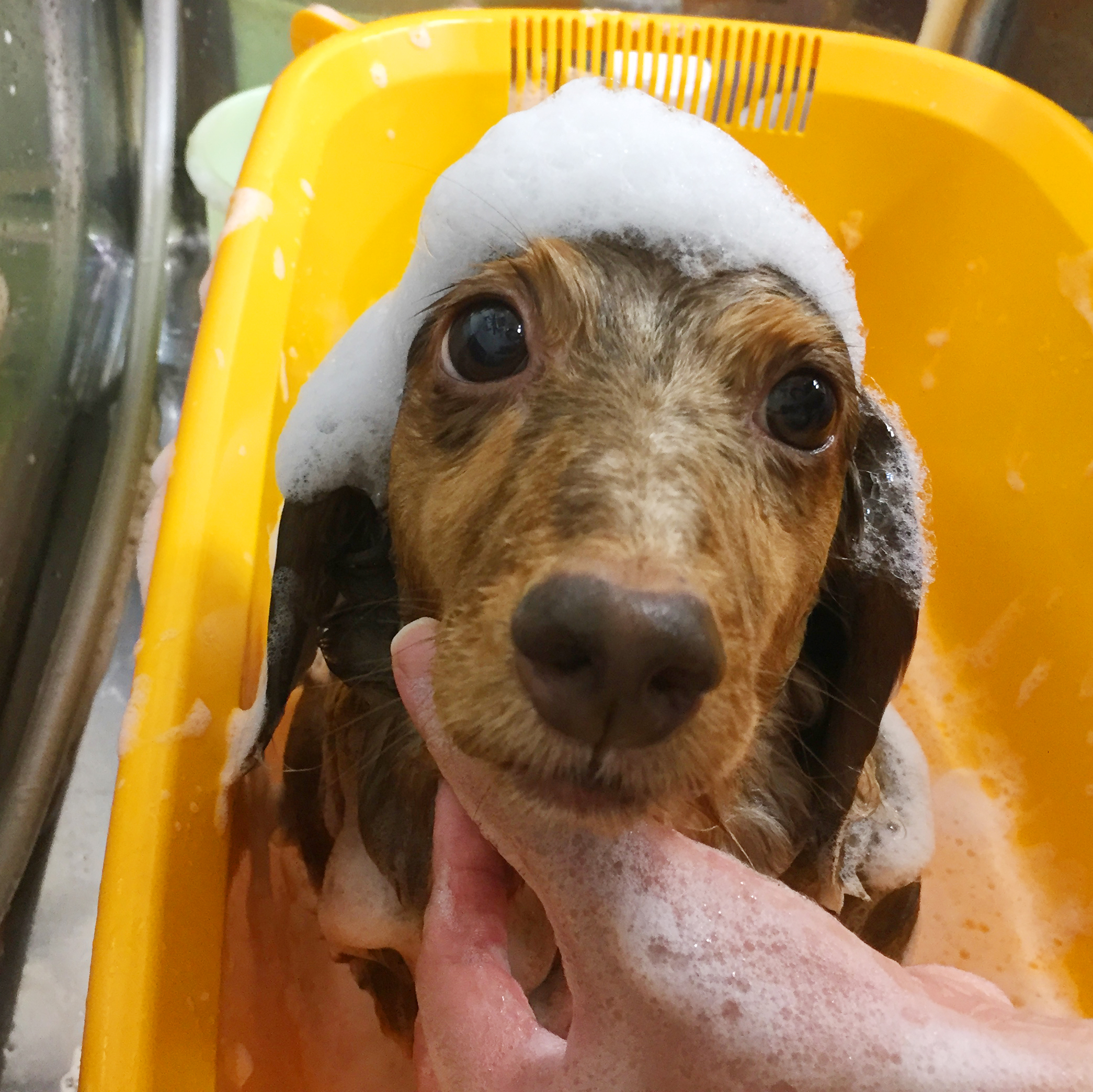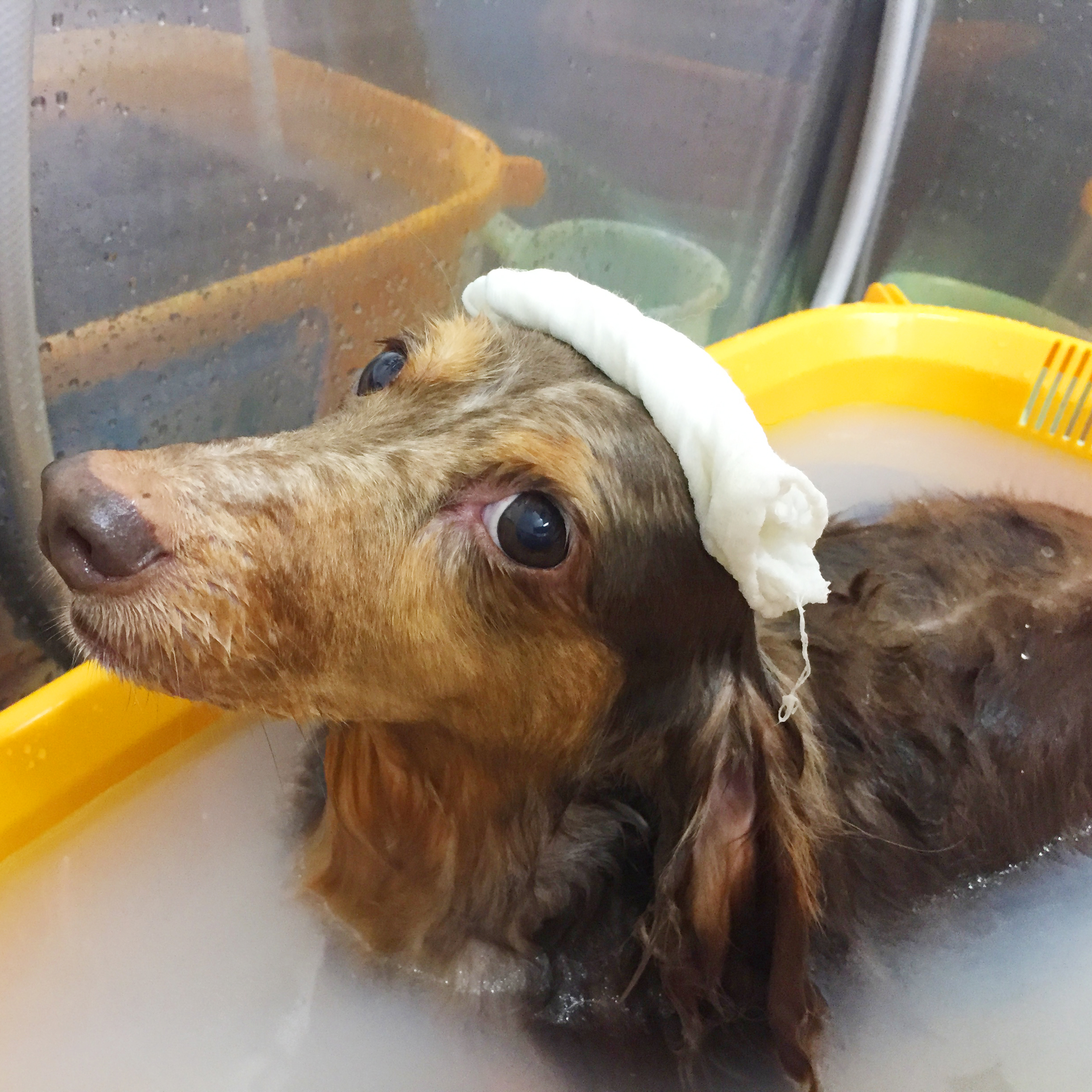 ミニチュアダックスのころんちゃんシャンプーコースと部分カットでご来店♪
