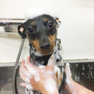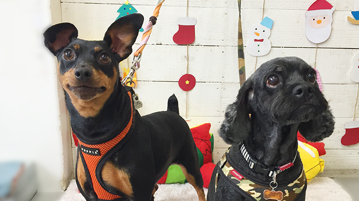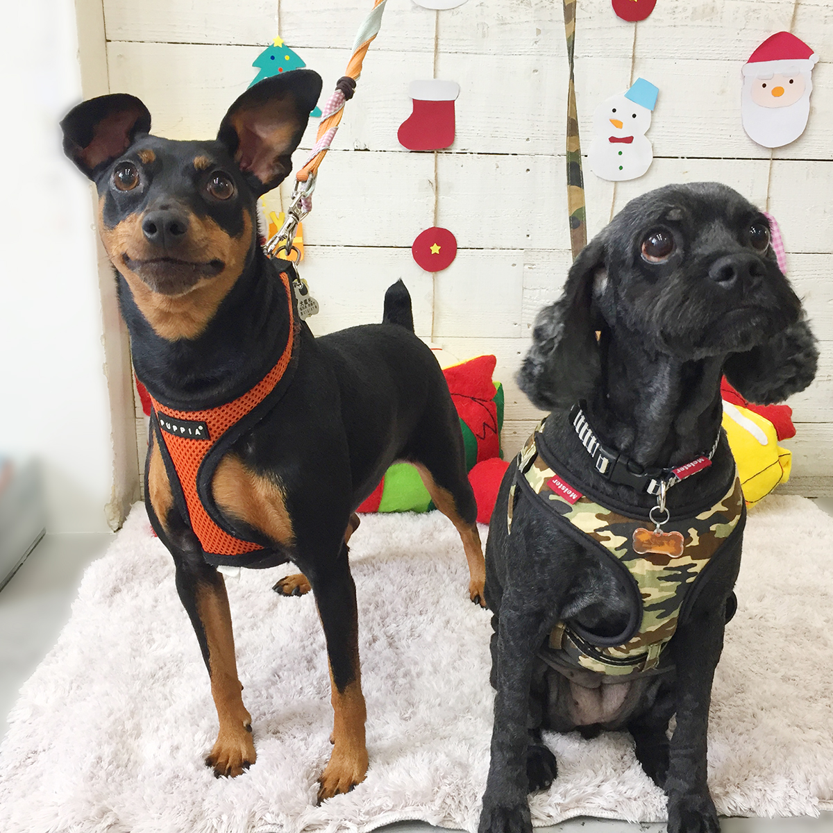 ミックスのナッシュちゃんとミニチュアピンシャーのロビーちゃんご来店♪