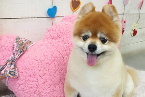 ポメラニアンのくうちゃん、カットコースと炭酸泉スパと部分カットでご来店♪